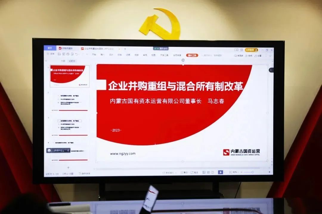 1月6日下午,内蒙古国资运营公司党委书记、董事长马志春以《企业并购重组与混合所有制改革》为题,为干部职工讲授专题党课。党课围绕学习贯彻党的二十大对于国有企业改革新部署要求,分享企业并购重组与混合所有制改革典型模式和经典案例,从提升能力开始,上好新年第一课。