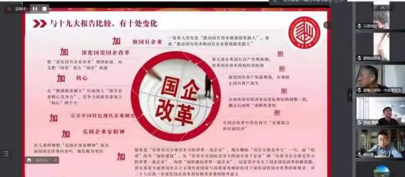 为推进内蒙古国资运营公司全体干部职工进一步学习领悟党的二十大报告的深刻内涵、精神实质和实践要求,把学习宣传贯彻党的二十大精神与分析形势、规划未来、执行政策、推进工作结合起来,11月2日,公司党委组织召开学习党的二十大精神培训会,公司全体干部职工、分子公司全体党员共99人按时参加培训。根据疫情防控工作要求,培训会议线上召开。
