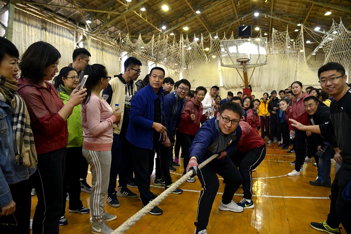 最激动人心的莫过于拔河比赛了,拔河比赛作为压轴大戏放在了最后一项进行。按照领队赛前的布置,我公司拔河队精诚团结,顺利赢下第一轮进入到1/8决赛,然后又连赢两局拿下对手进入半决赛。半决赛上的对手明显更强大了,领队分析了对手情况,认真布置应对战术,激励大家勇往直前,虽然过程比较艰难,但公司队还是连下两城取得了胜利。拔河决赛掀起了整场运动会的最高潮,我们决赛的对手是上届卫冕冠军,是本次比赛的最大夺冠热门。面对体量比我们大一圈的对手,我们没有退缩,心中充满了对胜利的渴望。第一局比赛一开始,对手的力量优势一下体现出来,迅速的占据了优势,但是处于劣势的我们坚定信念,齐心协力稳住了局面,一点一点的蚕食着对手的优势并逐渐反败为胜。经过第一局的较量,运动会上的大多数参赛队都被我们的精神所感染,成为了我们的粉丝,纷纷为我们加油打气。在第二局中,对手也认识到我们的实力,调整了战术,我们没顶住对手的“三板斧”,遗憾输了一局,但我们没有被对手的叫嚣与挑衅打乱节奏,反而更激发了我们的斗志沉着应对决胜局。决胜局的比赛中,大家斗志昂扬,啦啦队挥舞着公司的旗帜整齐的喊着口号,我们的“粉丝”也在为我们呐喊助威,虽然一上来对手又占据了上风,但国资运营人绝不会轻易让胜利溜走,我们竭尽全力与对手僵持住,在大家都耗尽所有力气时,我们靠的是坚定的意念和必胜的精神,经过近4分钟的僵持,对手终于撑不住了,如溃堤一般被我们一下拉了过来,我们再次实现了逆转并赢得了整场运动会最有分量的冠军!全场沸腾了,队员们相互拥抱,击掌庆祝,公司的旗帜在空中飘扬,欢呼和祝福声此起彼伏,淹没了全场!