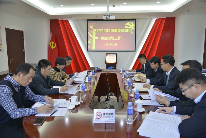 12月19日下午,自治区国资委党委委员、副主任及永乾一行4人到国资运营公司调研党总支书记抓基层党建工作和担当作为、党风廉政建设工作情况,公司党总支书记、董事长、总经理王力军带领公司班子、各支部书记及党务工作人员就调研的相关问题向调研组一行进行了汇报。