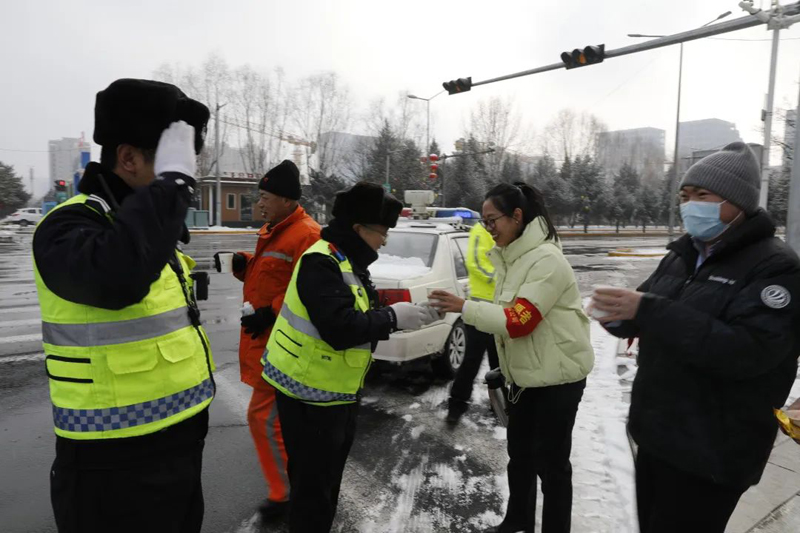 2月9日,2023年的初雪悄然而至,雪中的青城银装素裹,寒意阵阵。国资运营公司第一、二党支部联合开展支部共建,为附近清理积雪的环卫工人、维护秩序的交通警察送上春天的第一杯奶茶,让这个春天多了一份暖意。