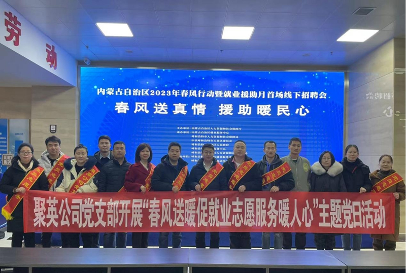 为进一步促进党建与业务工作深度融合,激发支部党组织活力,2月11日,内蒙古人才控股集团党支部开展主题党日活动,服务支持“内蒙古自治区2023年春风行动暨就业援助月首场线下招聘会”成功举办。此次招聘会由自治区人力资源和社会保障厅主办,自治区就业服务中心、呼和浩特市人力资源和社会保障局、中共呼和浩特市玉泉区委员会、玉泉区人民政府、呼和浩特市就业服务中心等部门联合承办。
